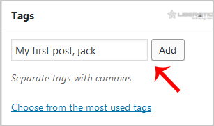 4. Scroll down to the Tags option and enter tags. If you wish to enter multiple tags, use a comma, and click on the Add button.