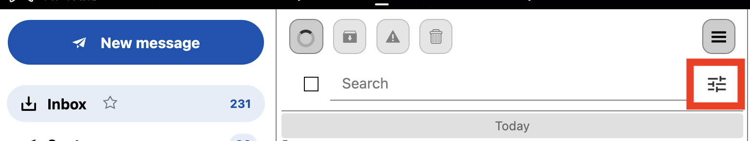 At the top of the envelope list in any mail layout, there is a search field shortcut for searching email subjects. Starting from version 3.7, this shortcut allows you to search by subject, recipient (to), or sender (from) by default.