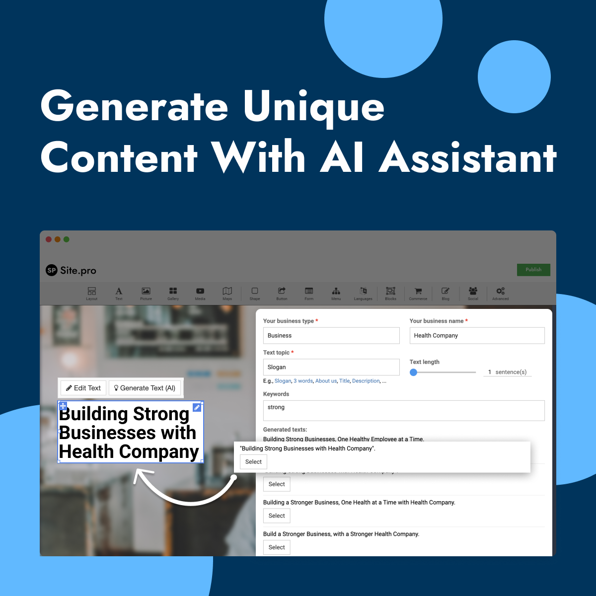 - If “Generate Text (AI)” button does not appear — wait a couple minutes and reload Website Builder page.